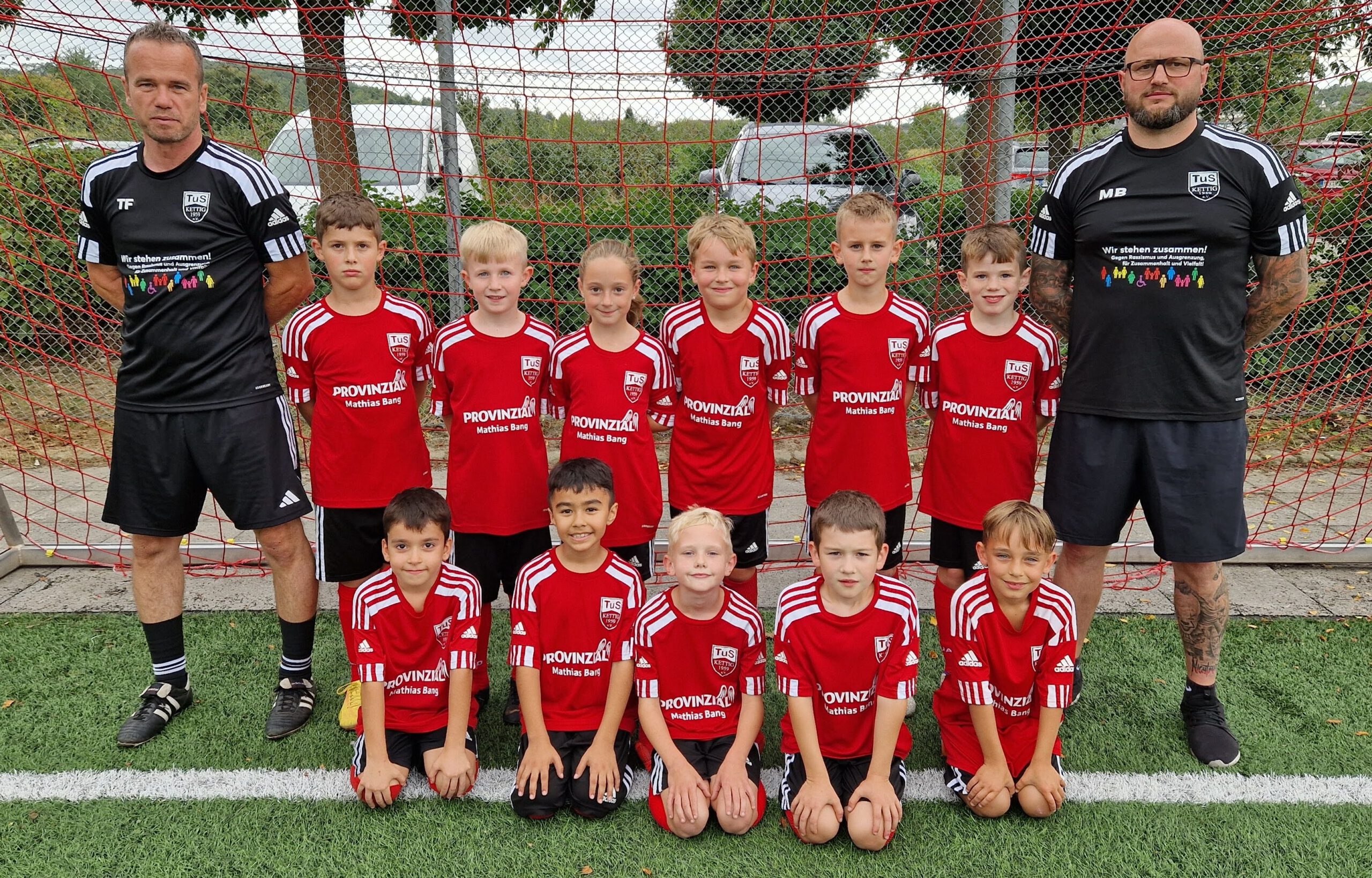 Die Kinder der F-Jugend bedanken sich bei ihren Sponsoren, RHI Magnesita und der Provinzial Niederlassung Mathias Bang