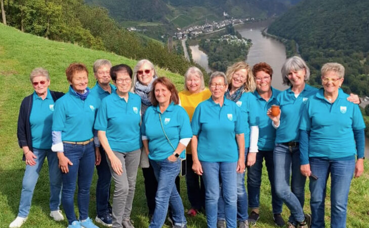 Der Jahresausflug der Gymnastikfrauen des TuS Kettig fand am 27.09.2025 mit einer Planwagenfahrt entlang der Mosel statt. Mit dem Zug ging es morgens um 11.30 Uhr in Richtung Hatzenport. Hier angekommen stärkten wir uns erst einmal auf einer freien Wiese mit Blick auf die Weinberge mit einem reichhaltigen Frühstück, bevor es auf den bereitstehenden Planwagen ging. Ausreichend mit Wein, Wasser und Salzgebäck versorgt fuhren wir durch die vielen kleinen Ortschaften entlang der Mosel mit Blick auf die Weinberge.